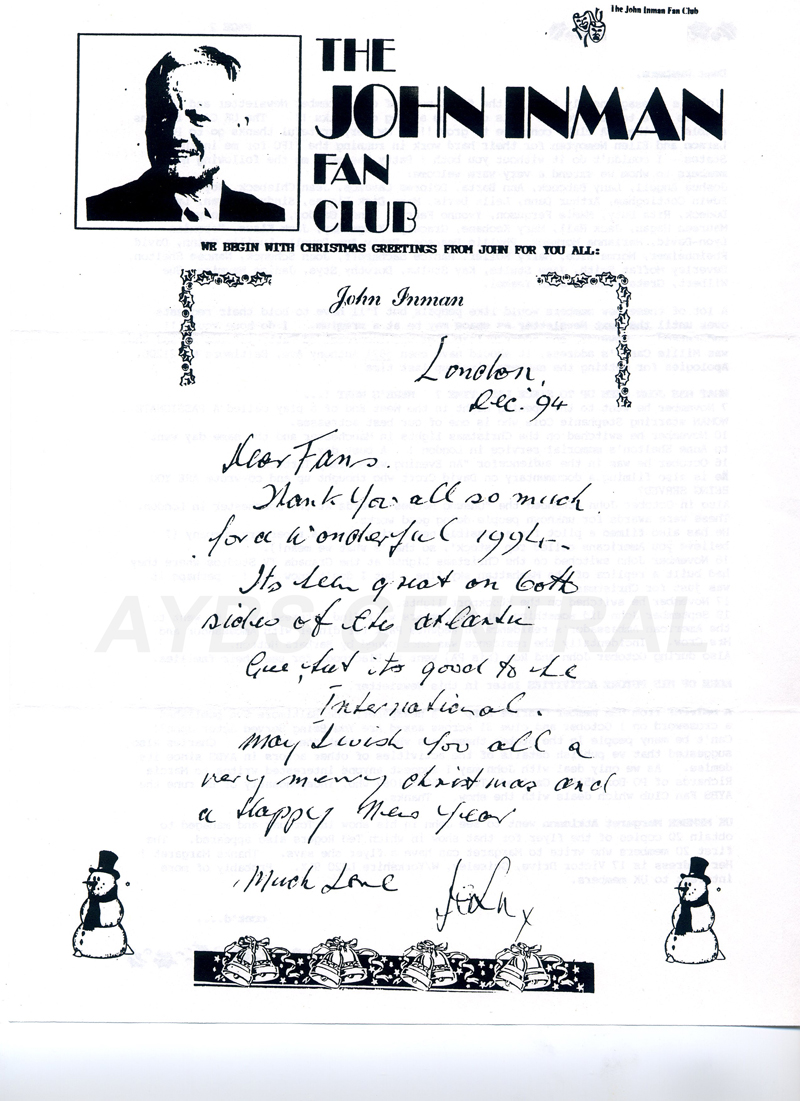 John Inman's Fan Club ran from 1977-2006 and served both the UK and the USA. The many fans over the years that were members of this club were treated to many tidbits of info as well as neat artwork and letters from John during the Christmas holidays. After all these years, he is still missed by fans all over the world. Here's a little insight into his humor and art skills.