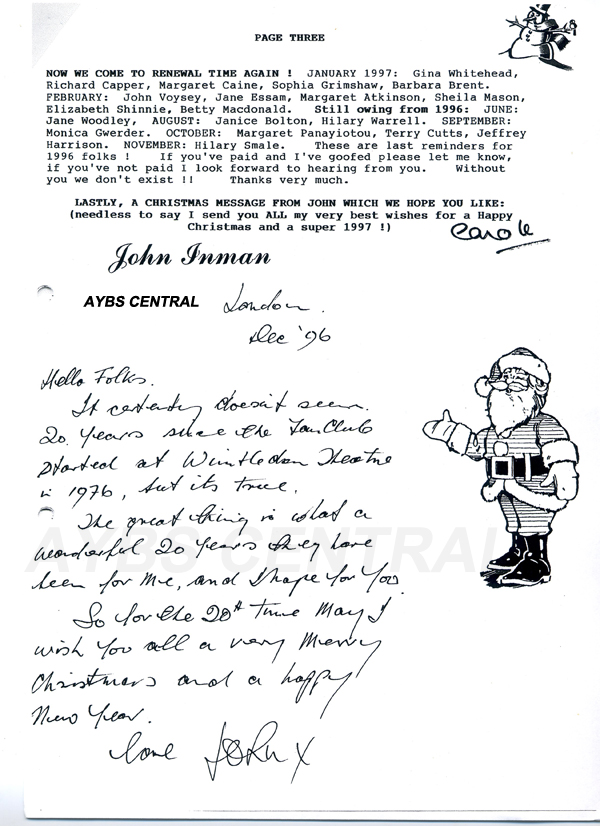 John Inman's Fan Club ran from 1977-2006 and served both the UK and the USA. The many fans over the years that were members of this club were treated to many tidbits of info as well as neat artwork and letters from John during the Christmas holidays. After all these years, he is still missed by fans all over the world. Here's a little insight into his humor and art skills.